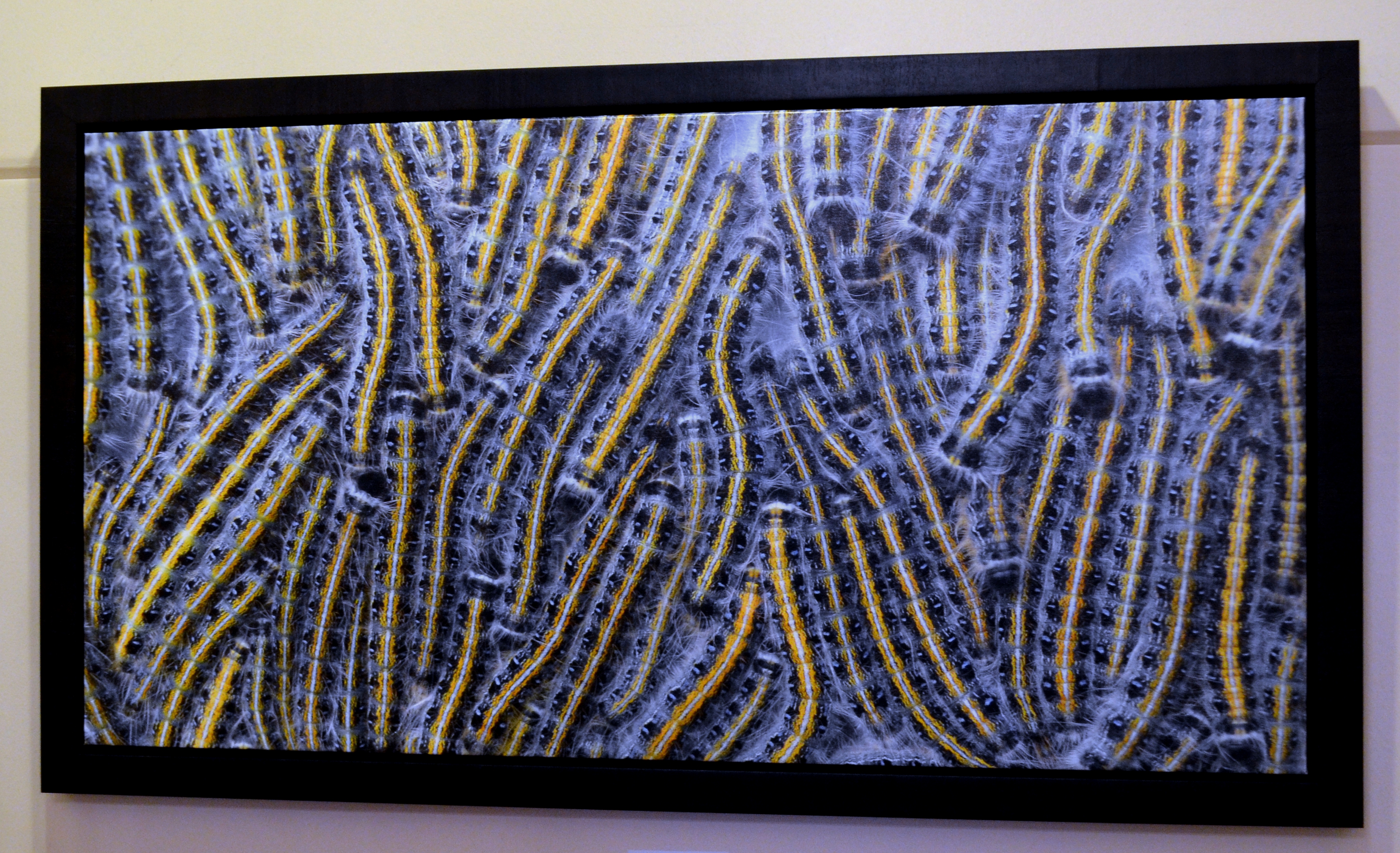 Judge Jeff Boshart, photographer and retired professor at Eastern Illinois University at Charleston, awarded Stokes top honor in the Adult, Color Division for his photo on canvas, “Autumn Haze.” The Terre Haute artist’s color photo on canvas titled “Caterpillars” received an Honorable Mention ribbon.