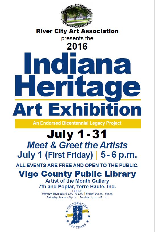 RCAA’s Bicentennial Legacy Project, “Indiana Heritage Art Exhibition,” July 1-31 in Vigo library