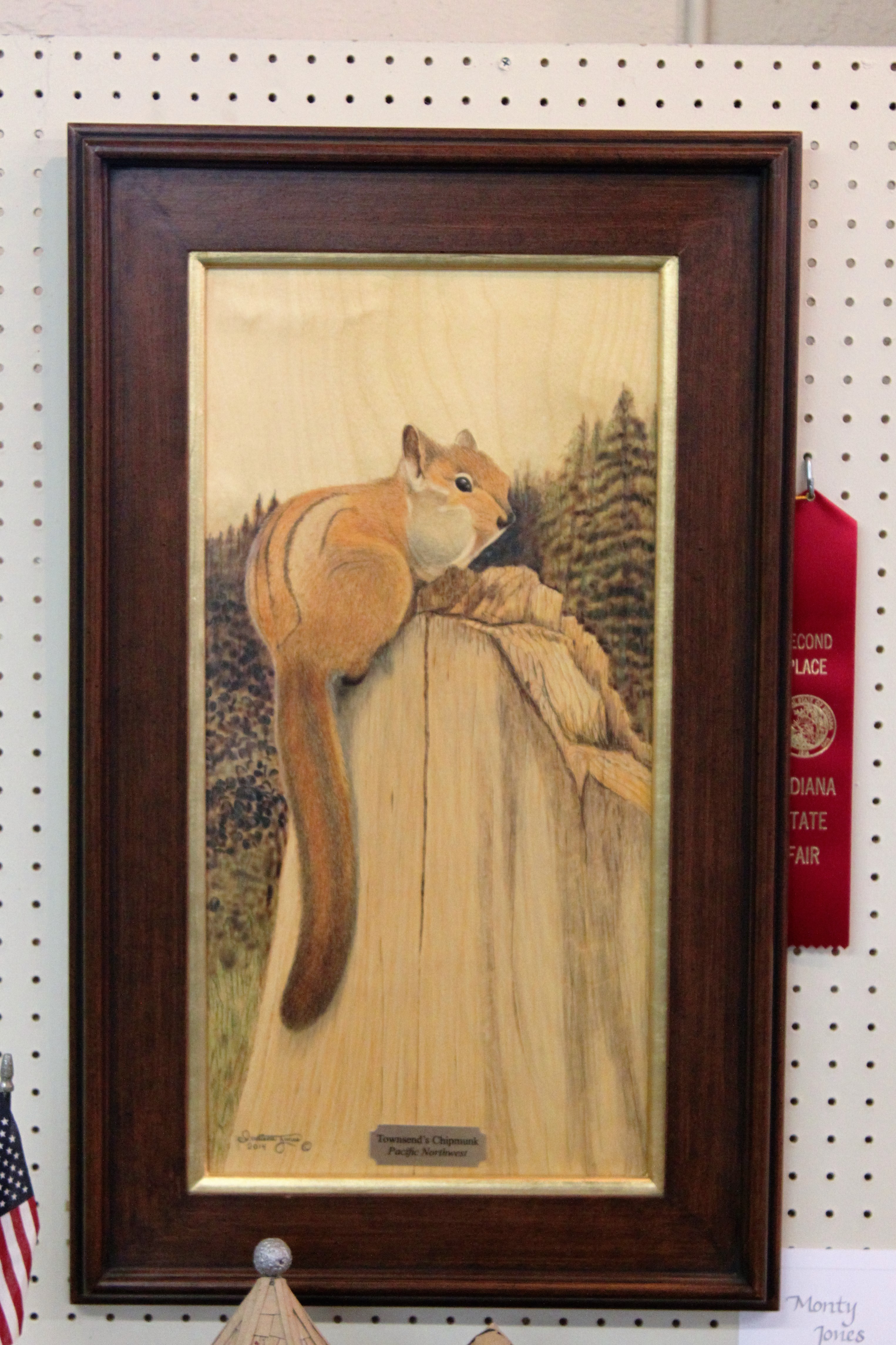 Through the encouragement of the Circle City Woodcarvers, Monty “Indiana” Jones of Terre Haute entered two examples of his pyrography in the 2016 Indiana State Fair at Indianapolis.