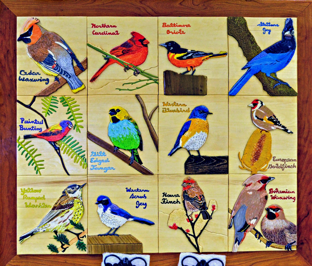 Anderson’s is inlaid wood with acrylic. Her piece is titled “Song Birds.”