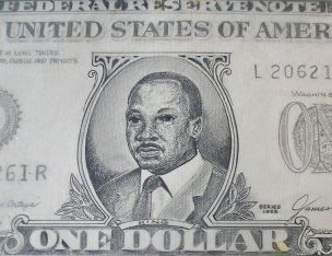 His Black History Month-themed display includes a watercolor, “Allen Chapel Underground”; “African Tree of Life” in graphite; and “Legal Tender,” a Dr. Martin Luther King Jr. dollar bill, graphite and ink.