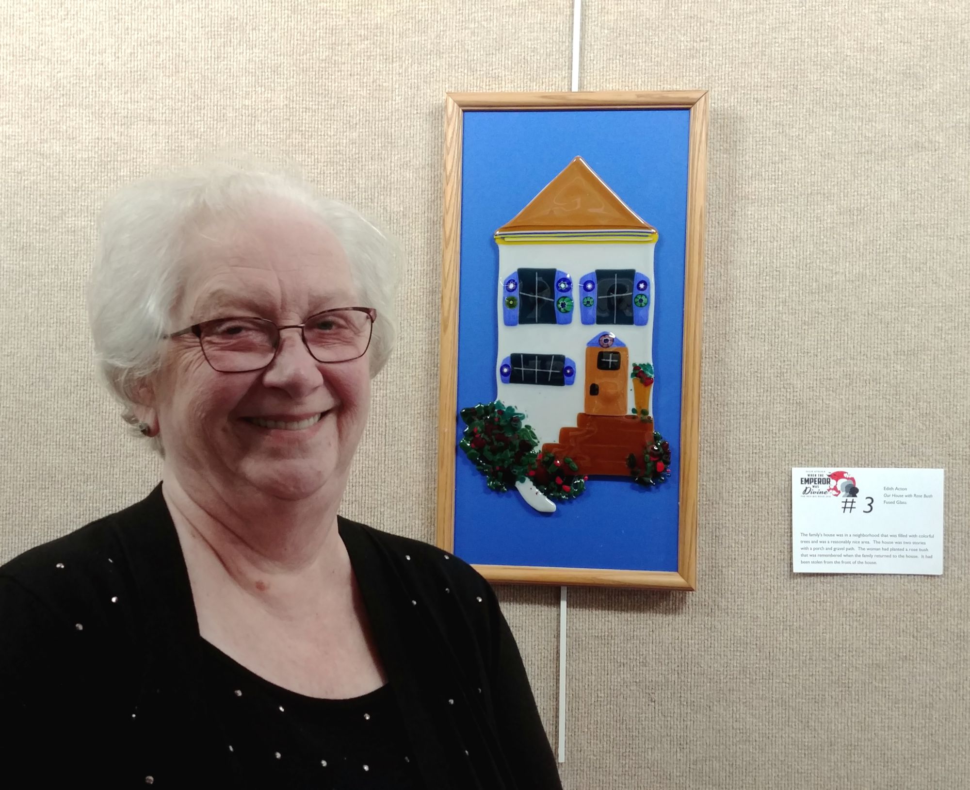 “Loved the fused glass depiction of the family’s home with rosebush uprooted.”