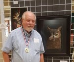 First-place medallions were awarded to Steve Harrold for his oil painting, “Oh It’s You”; Sheila K. Ter Meer for a photography-based digital abstraction, “Party Girl”; Valerie Funk for a mixed media entry in fabric, “Radiant Rhapsody”; Monty Jones for his work in colored pencil, “Horned Owl,” in the drawing category; and Edith Acton for a fused glass wall hanging in the ceramics/glass category for “Pretty in Red & Blue.”