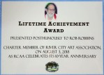 Past president Todd Stokes paid tribute to Robbins, an award-winning photographer and dedicated charter member who died just a few months after RCAA observed its five-year anniversary. Stokes also presented Robbins’ sons Patrick and Tom with their father’s Lifetime Achievement Award.
