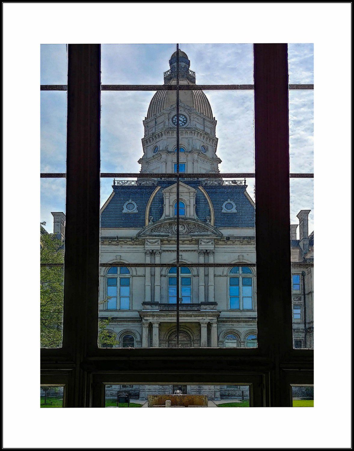Vigo County Courthouse view from inside steps of Terre Haute City government building