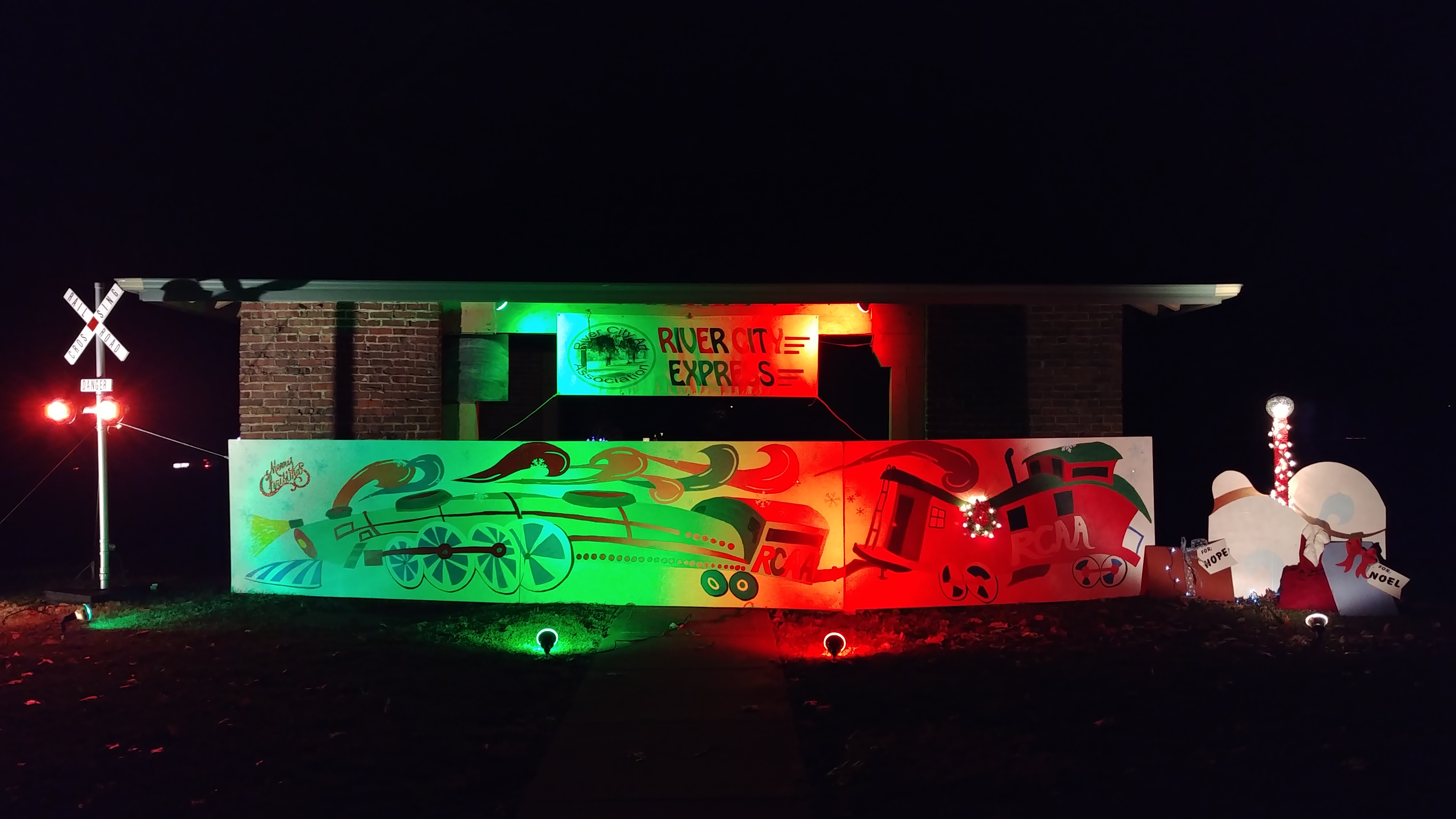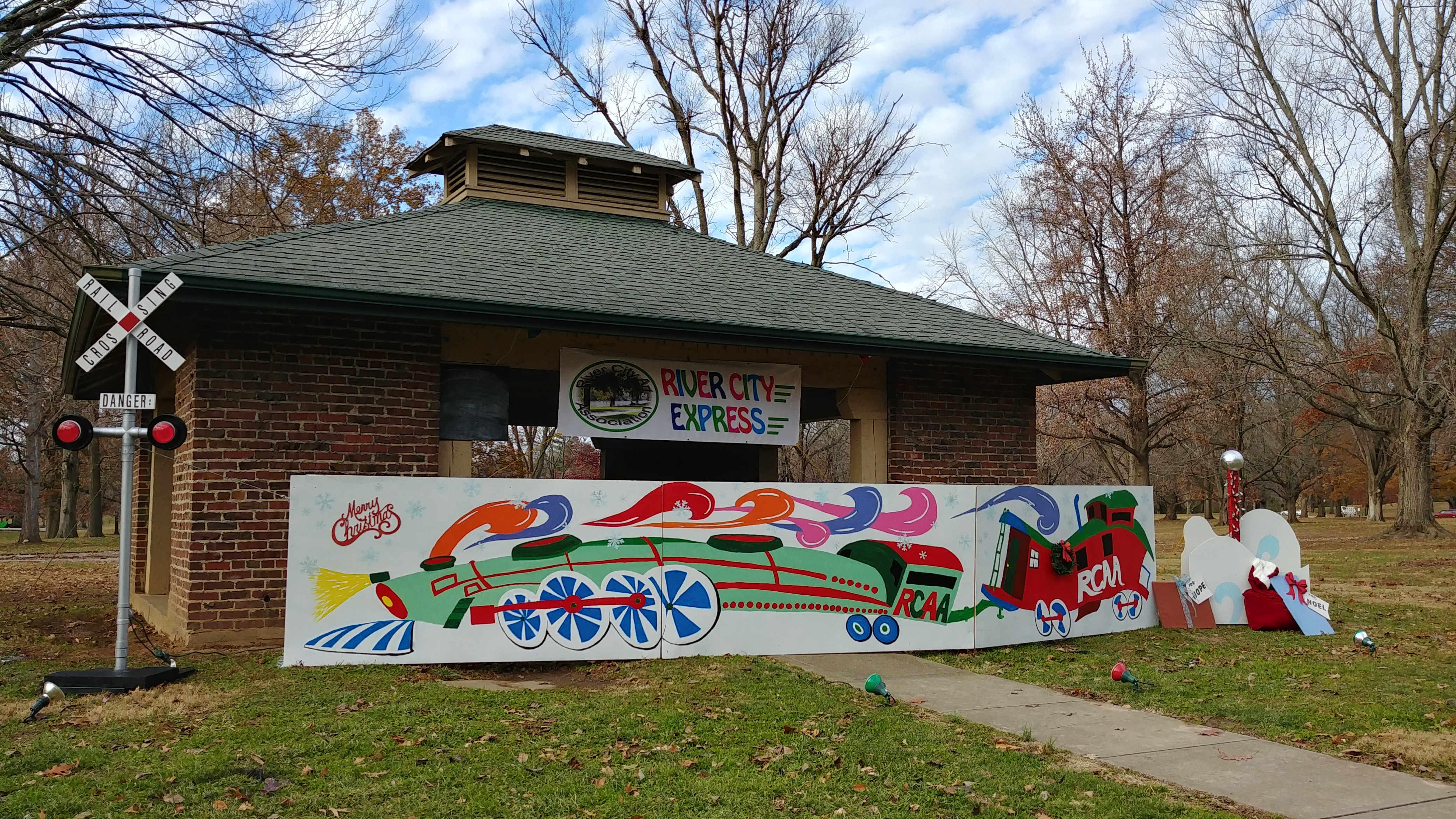 Members of River City Art Association created the “River City Express” for the 2018 Christmas in the Park shelter decorating contest in Deming Park at Terre Haute.