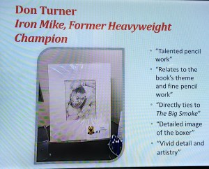 “Iron Mike” by Don received the most votes by VCPL patrons viewing all artwork inspired by or fitting the theme for the Big Read book selection, “The Big Smoke,” by Indiana Poet Laureate Adrian Matejka.