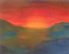 “Watercolors are harder to control but that is part of their appeal to me. Often I let the flow of the paint dictate the shapes and shades in the artwork. I enjoy the challenge of blending and layering with acrylics and I am trying to give more attention to textures and brush strokes. I’m most drawn to mountains, oceans and clouds for my subject matter. While I take inspiration from things at a grand scale, I’ve very recently begun to scale my paintings down to miniature, even as small as pennies. Art making is my way of resetting my mind. It allows me to process events in my life. When my anxiety goes up, it is good to spend time bringing my focus into a small corner of my world.”