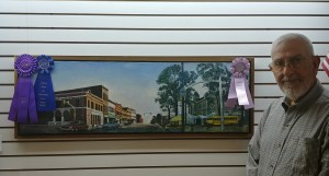 Congratulations to Eugene Thomas of Fairview Park near Clinton, Indiana, for his First Place and Best of Show and Most Popular entry “Rockville Square” in the Covered Bridge Art Association Associate Members’ Show which opened July 1 in the CBAA Gallery in Rockville, Indiana.