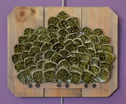 After studying at John Campbell’s Folk Art School, Indiana State University and Torner Community Center in Deming Park — and lots of experimenting — within five years he was able to make wall hangings from the medium of clay.