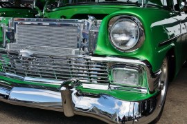 The two car images “White Altered” and “Green to Chrome” are part of Wright’s ever growing Definitive Car Series. This series is a concentration of the different lines, curves and parts of older cars that provide the onlooker with the information needed to identify the car. Most cars of today look much the same unlike the cars of yesterday which tend to have a personality and their own definitive look.