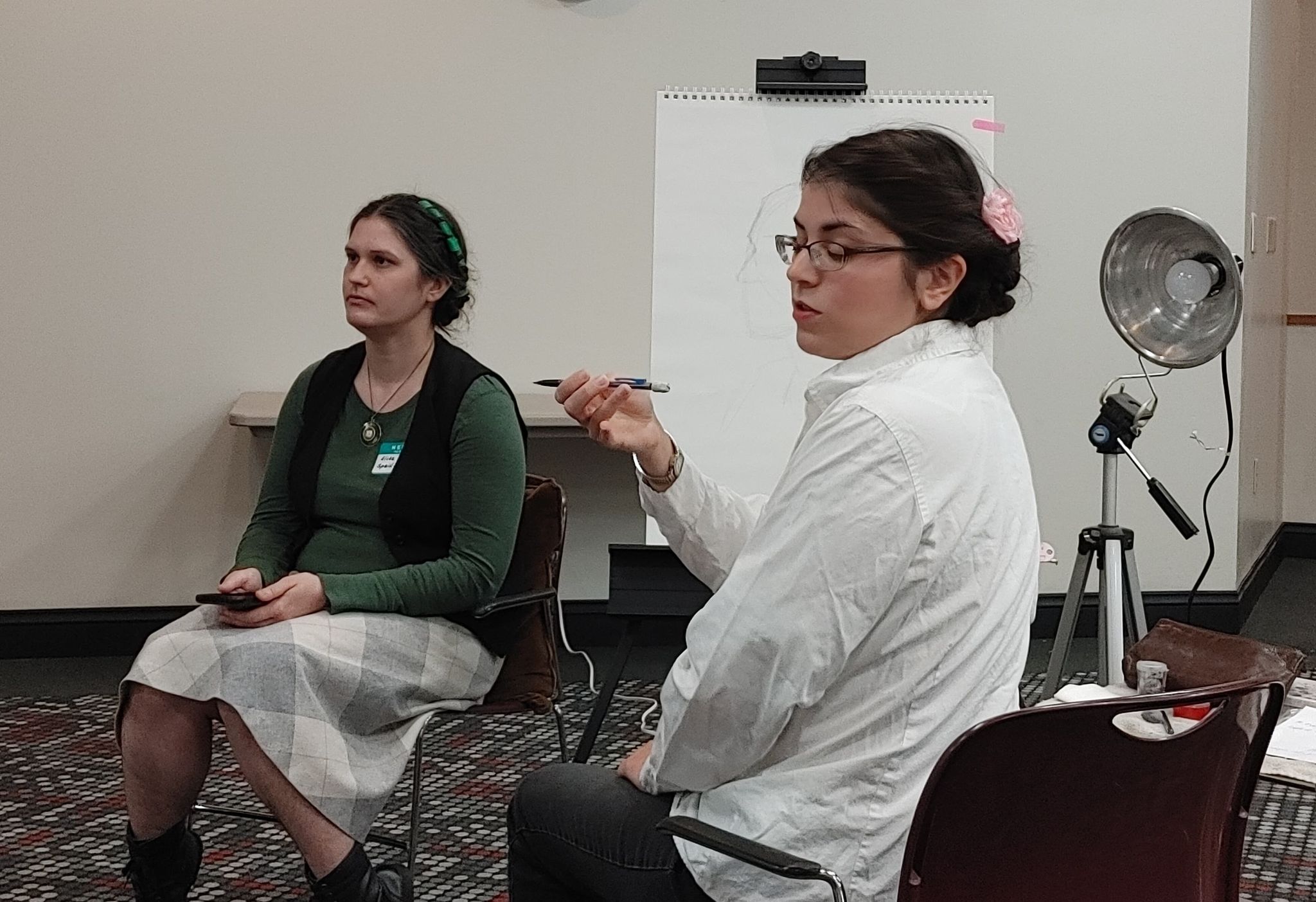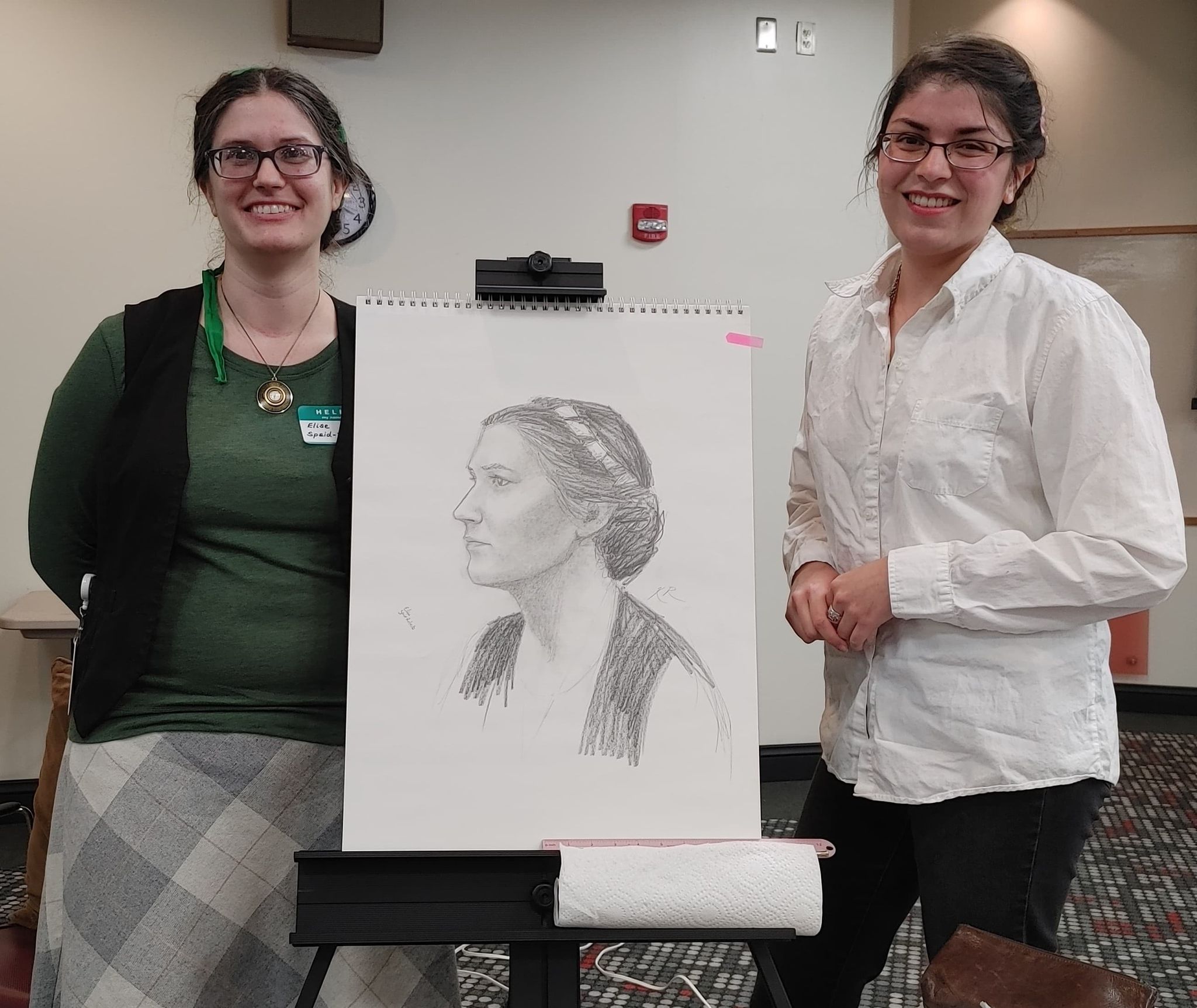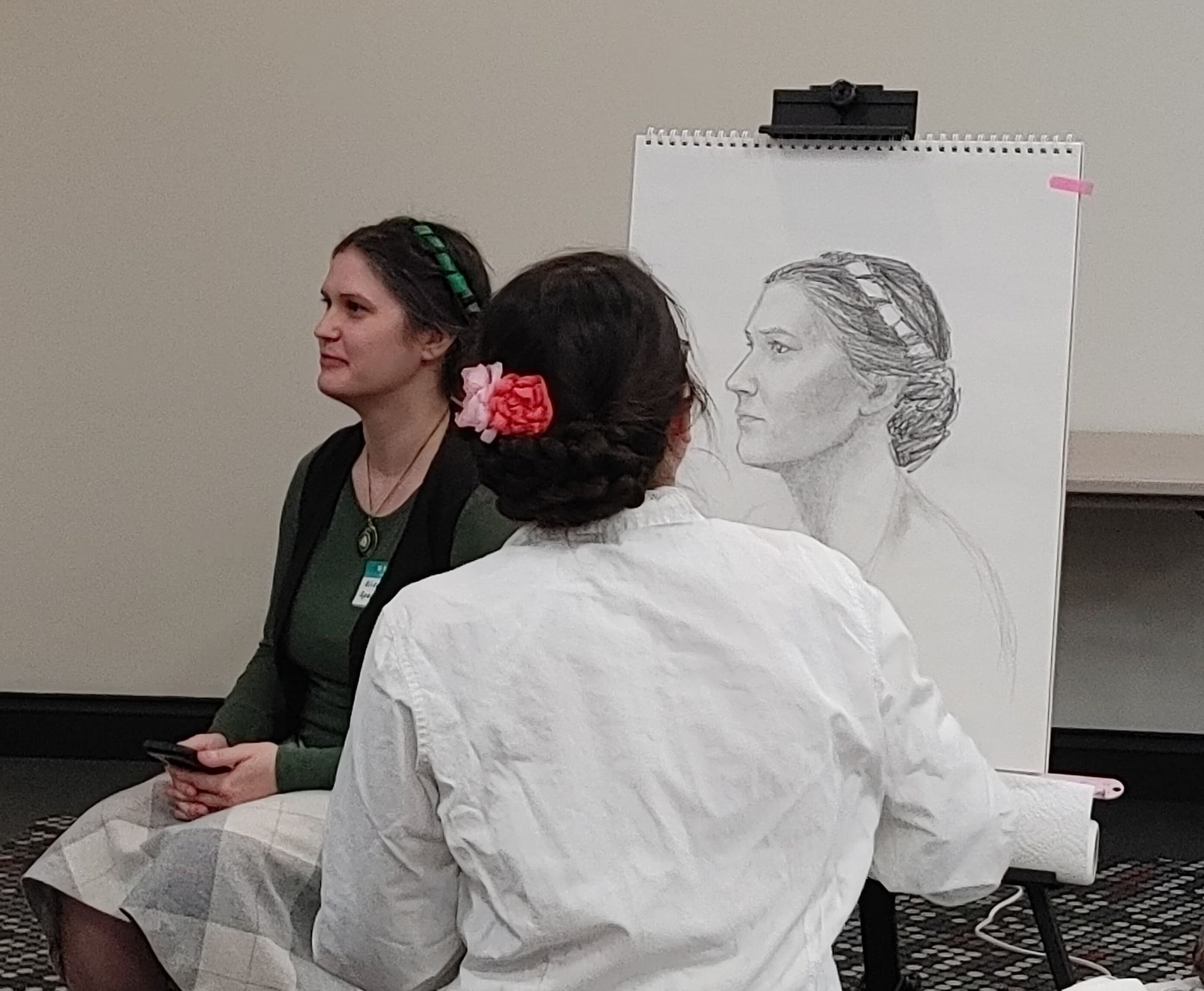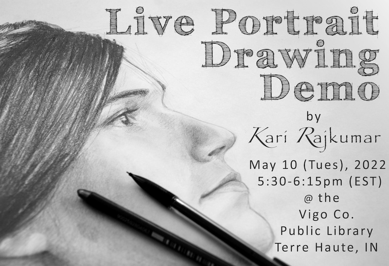 River City Art Association member Kari Rajkumar of Paris, Illinois, gave a Live Portrait Drawing demonstration on May 10 before the RCAA membership meeting in the Vigo County Public Library at Terre Haute, Indiana.