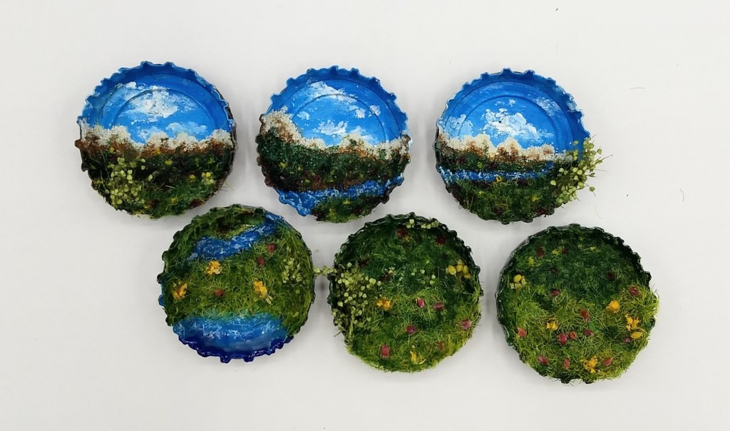 poetry. My tiny art varies from relief sculpted scenery within bottle caps, to landscape paintings