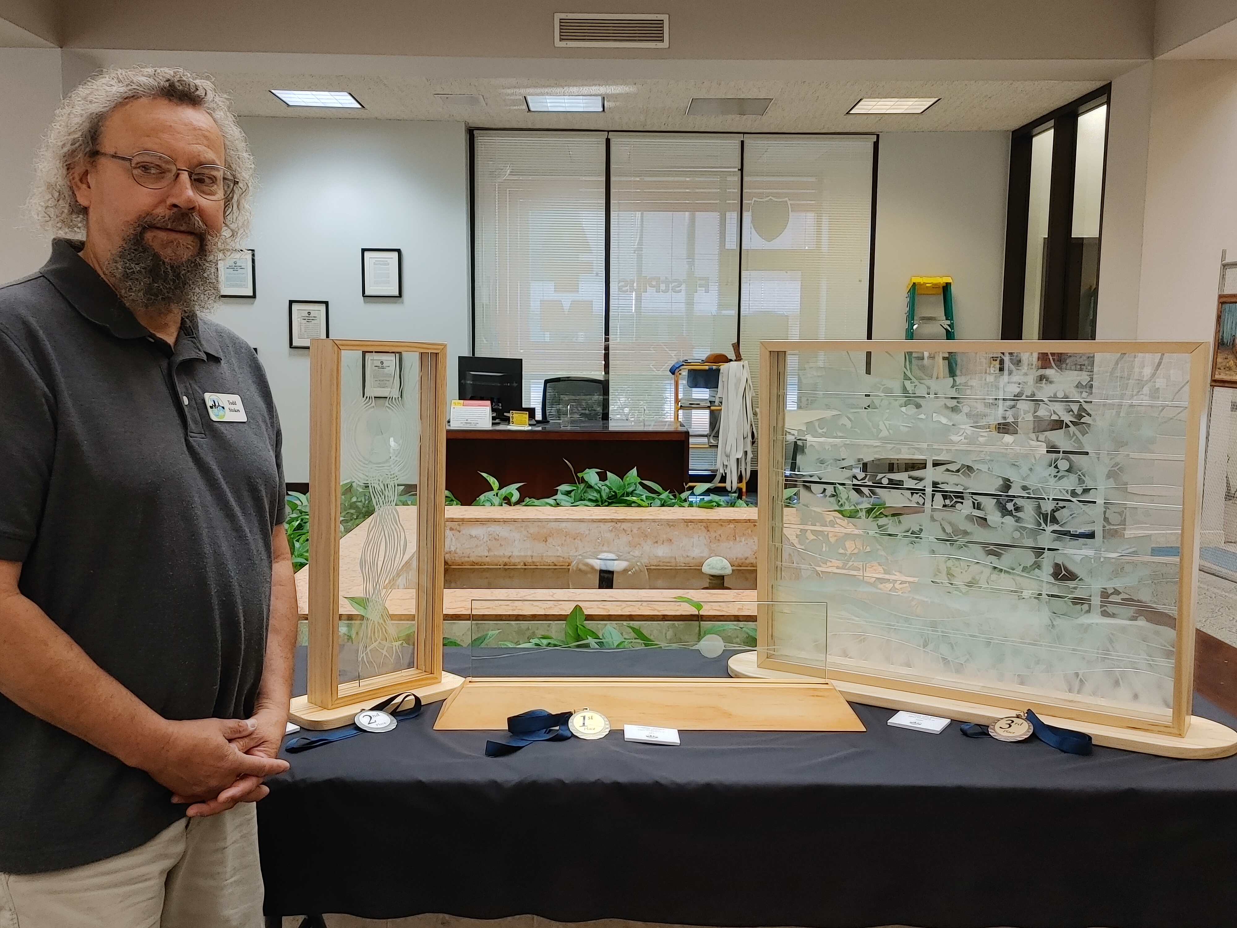 In August 2022, Todd’s glass etchings took First, Second and Third Place in RCAA’s 14th Annual Juried Exhibition.