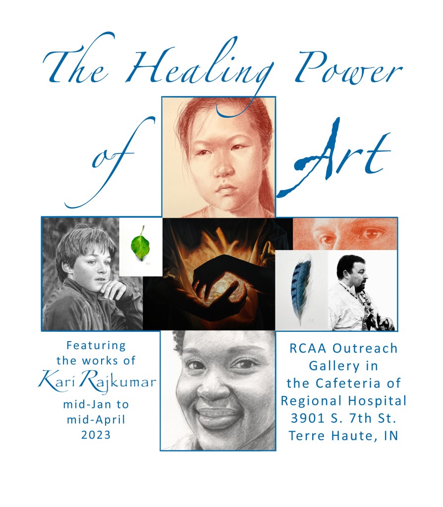 Kari Rajkumar is a primarily self-taught artist living and working in the Wabash Valley. She works in Graphite, Pastel, Oils, and sometimes a bit of Charcoal or Watercolor just for fun.