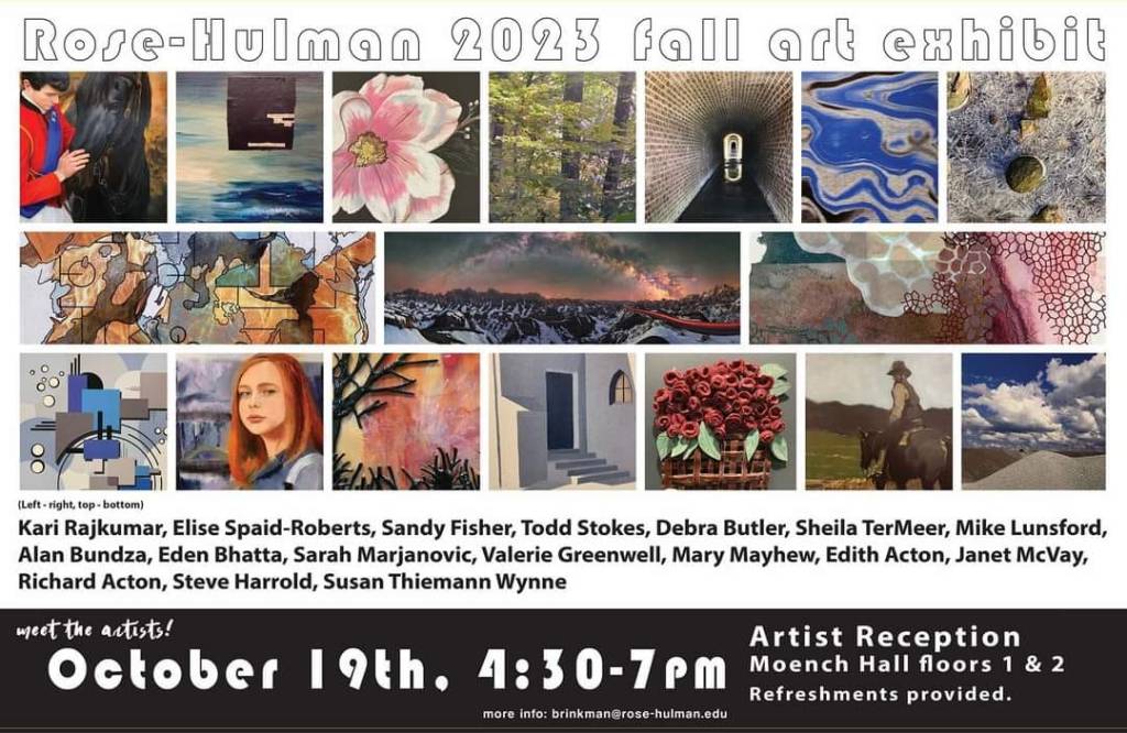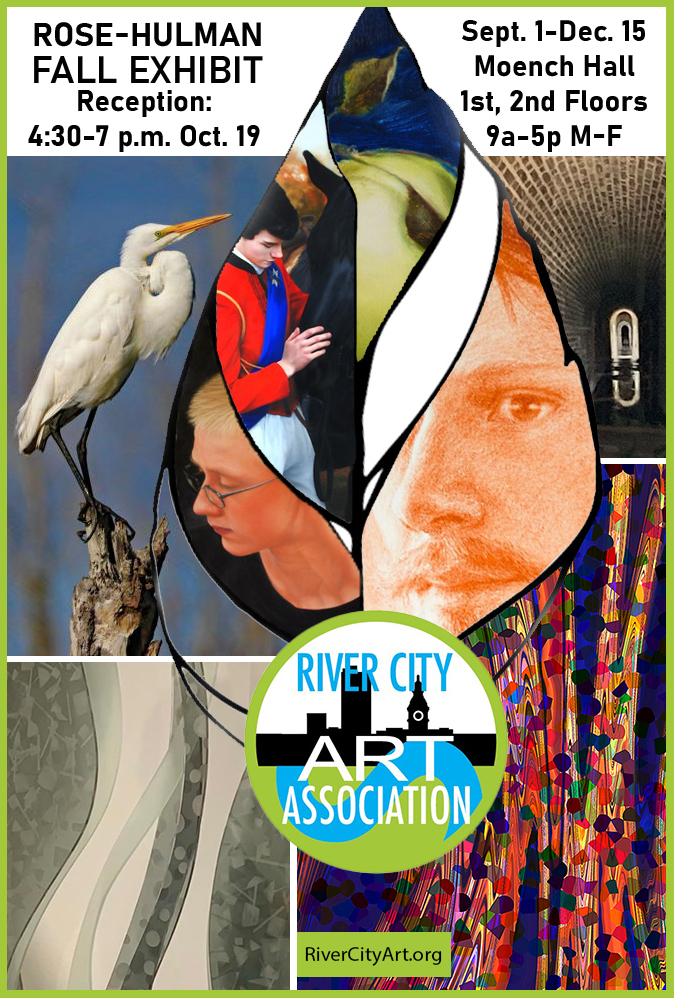 Artwork by 14 River City Art Association members are featured in the Sept. 1-Dec. 15 Fall Art Exhibit on the First Floor of Moench Hall at Rose-Hulman Institute of Technology in Terre Haute, Indiana.
