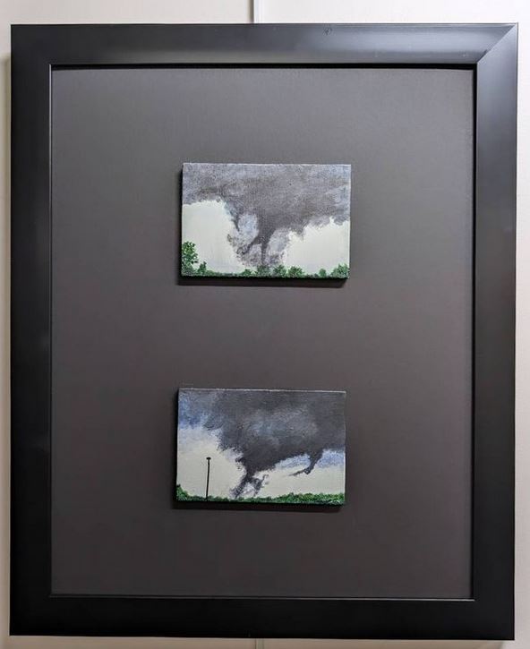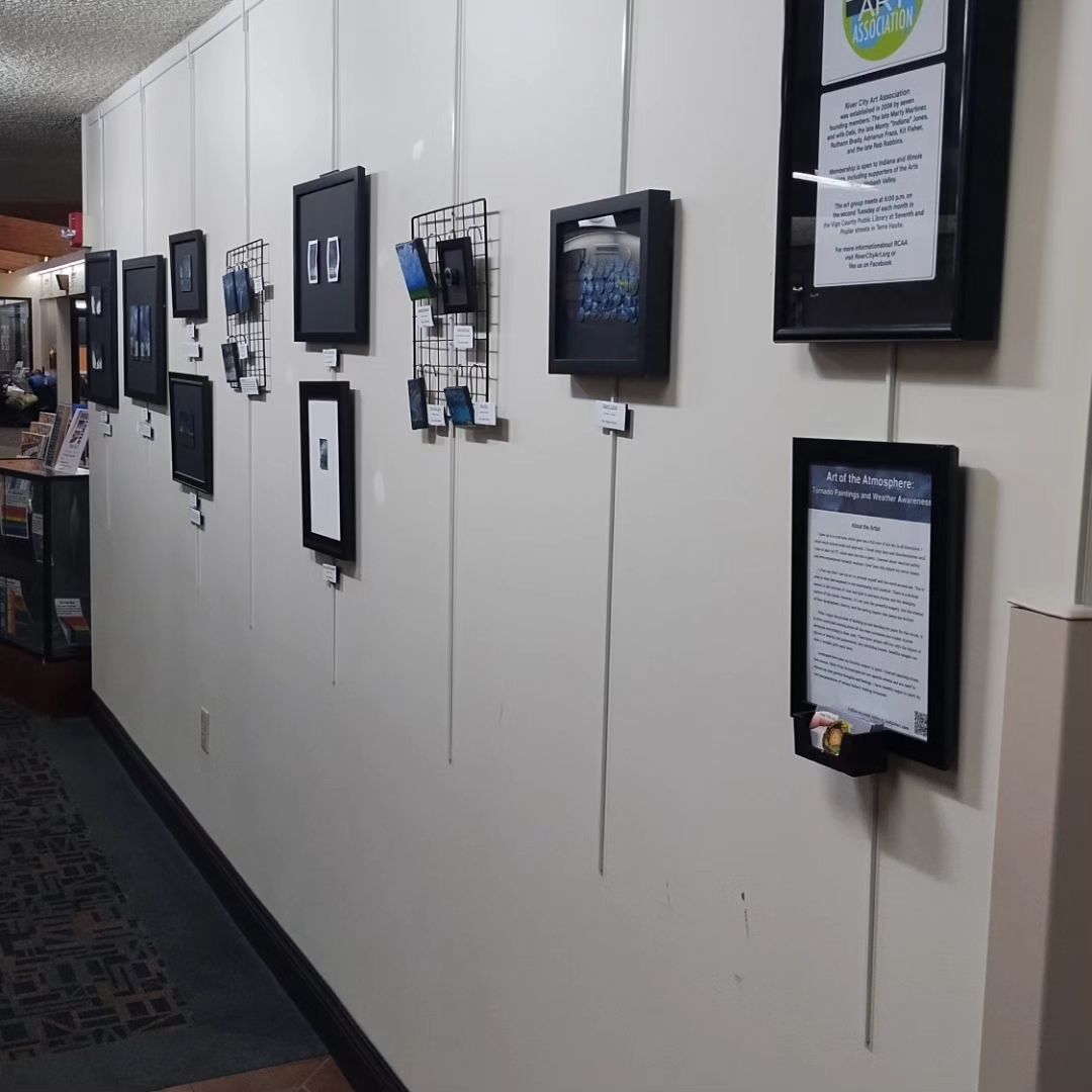 River City Art Association member Elise Spaid-Roberts shares her Tornado Paintings and Weather Awareness information in her “Art of the Atmosphere’ exhibit throughout June in RCAA’s Artist of the Month gallery space in the Vigo County Public Library at Seventh and Poplar streets in Terre Haute.