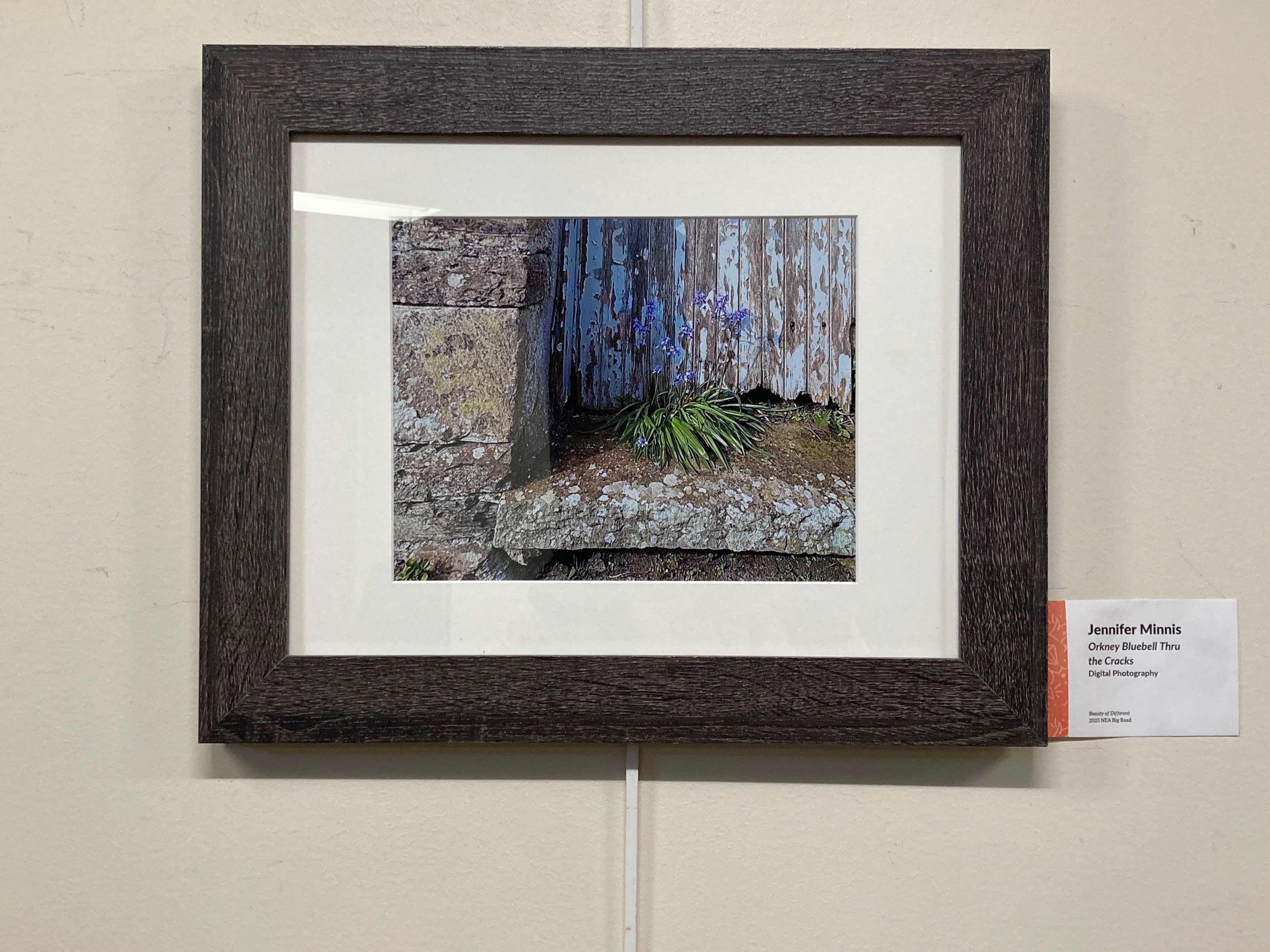 Debra Butler entered a mixed media piece titled “ACCESSIBILITY is More than a Parking Space.” Maria Deis titled her artwork “Conditional Response.” RCAA president Mary Mayhew was inspired to create her oil on canvas board titled “Speed.” A photograph by Jennifer Minnis is titled “Orkney Bluebell Thru the Cracks.” Elise Spaid-Roberts created a mixed media entry, “My Vision Board,” using eye drop vials and blackout poetry. Kris Toney asks “Where is My Mind?” in her digital mixed media entry. Donna Pomfret entered a painting titled “Unnoticed.”