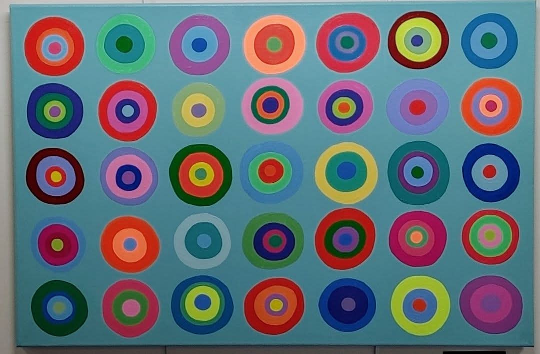 Her painting titled Target Practice was voted as the Most Popular entry in the Abstract April Show in Covered Bridge Art Gallery at Rockville, Indiana. It was the third honor she received at the April 27 closing reception.