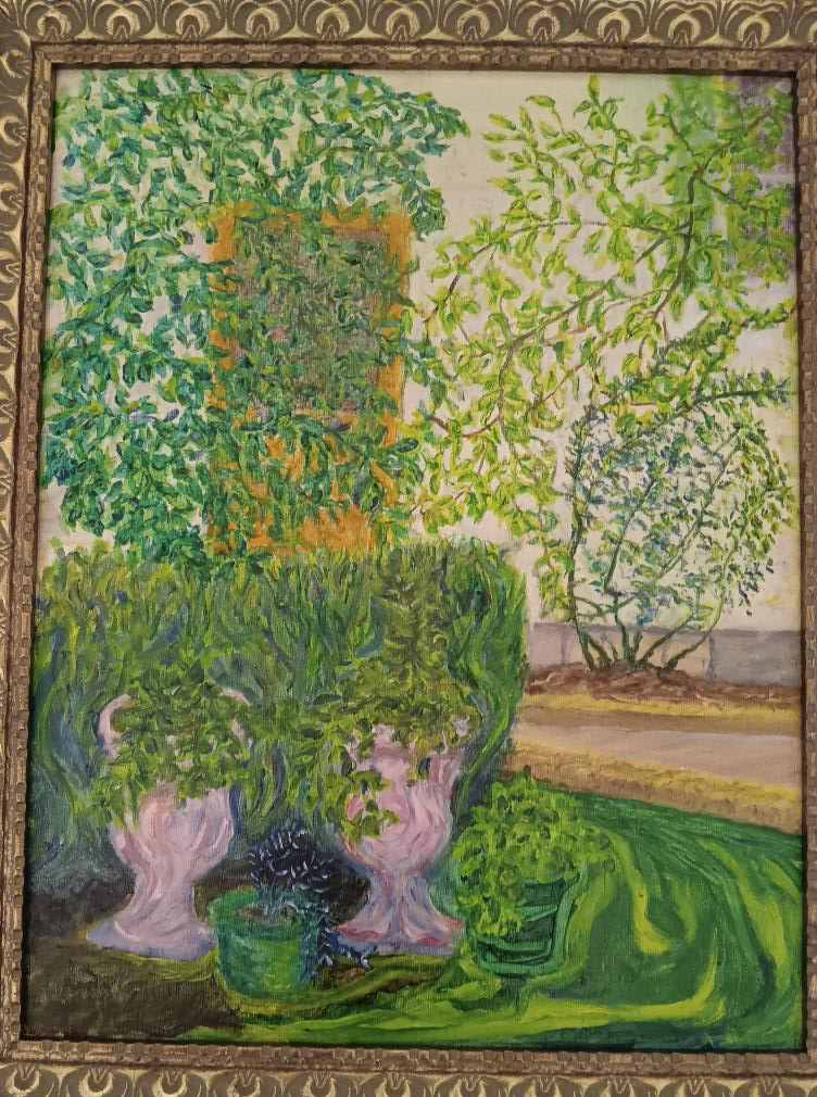 RCAA members Jennifer Minnis and Maria Deis also took part in the competition. Minnis entered watercolors of the Carmelite Monastery in Terre Haute and the Sisters of Providence Motherhouse at St. Mary-of-the-Woods. Deis set up her canvas and oil paints to recreate a backyard scene at home in Vigo County.