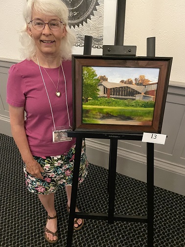 River City Art Association president Mary Mayhew received the Indiana Plein Air Painters Association Award of Merit on June 25 at Swope Art Museum’s 3rd Annual William T. Turman Plein Air Competition awards ceremony in the Deming Hotel in Terre Haute, Indiana.