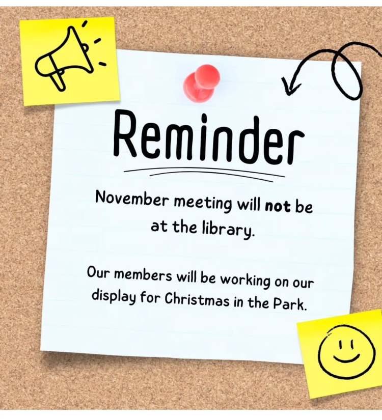 Instead members will meet at 4 p.m. in MuseArt Terre Haute (2101 Hulman St.) to work on their Christmas in the Park shelter display.