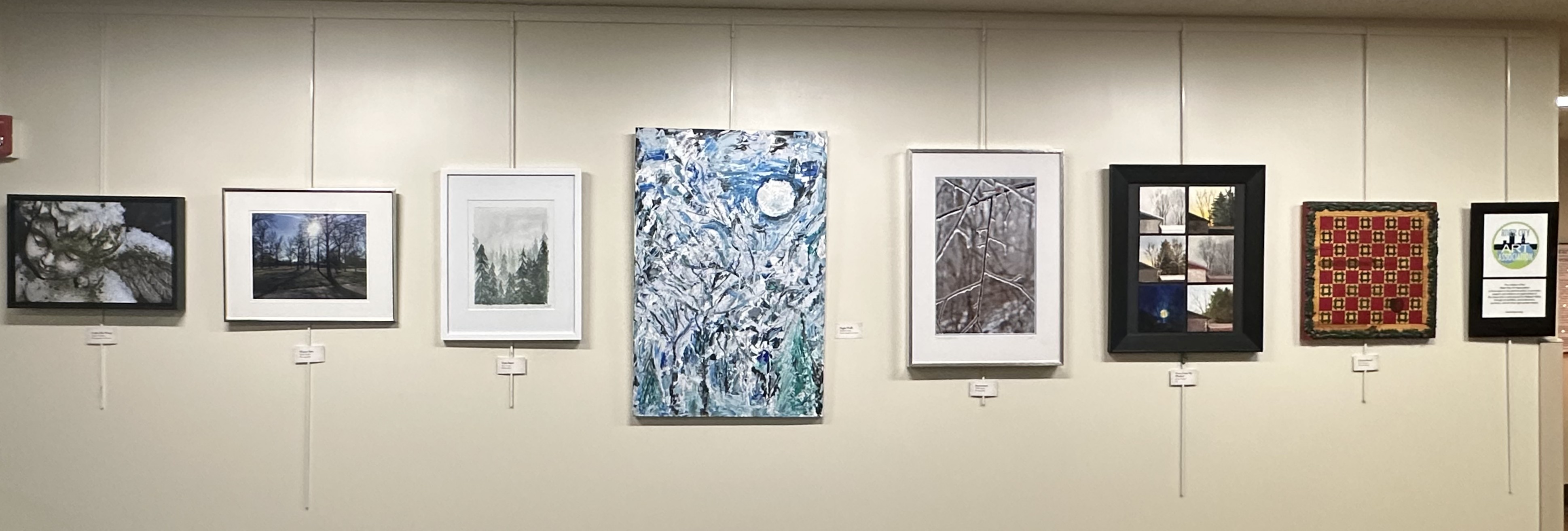 Oil and acrylic paintings, a wood carving, photography and a watercolor will by day deck the hall between the lobby and the computer lab.